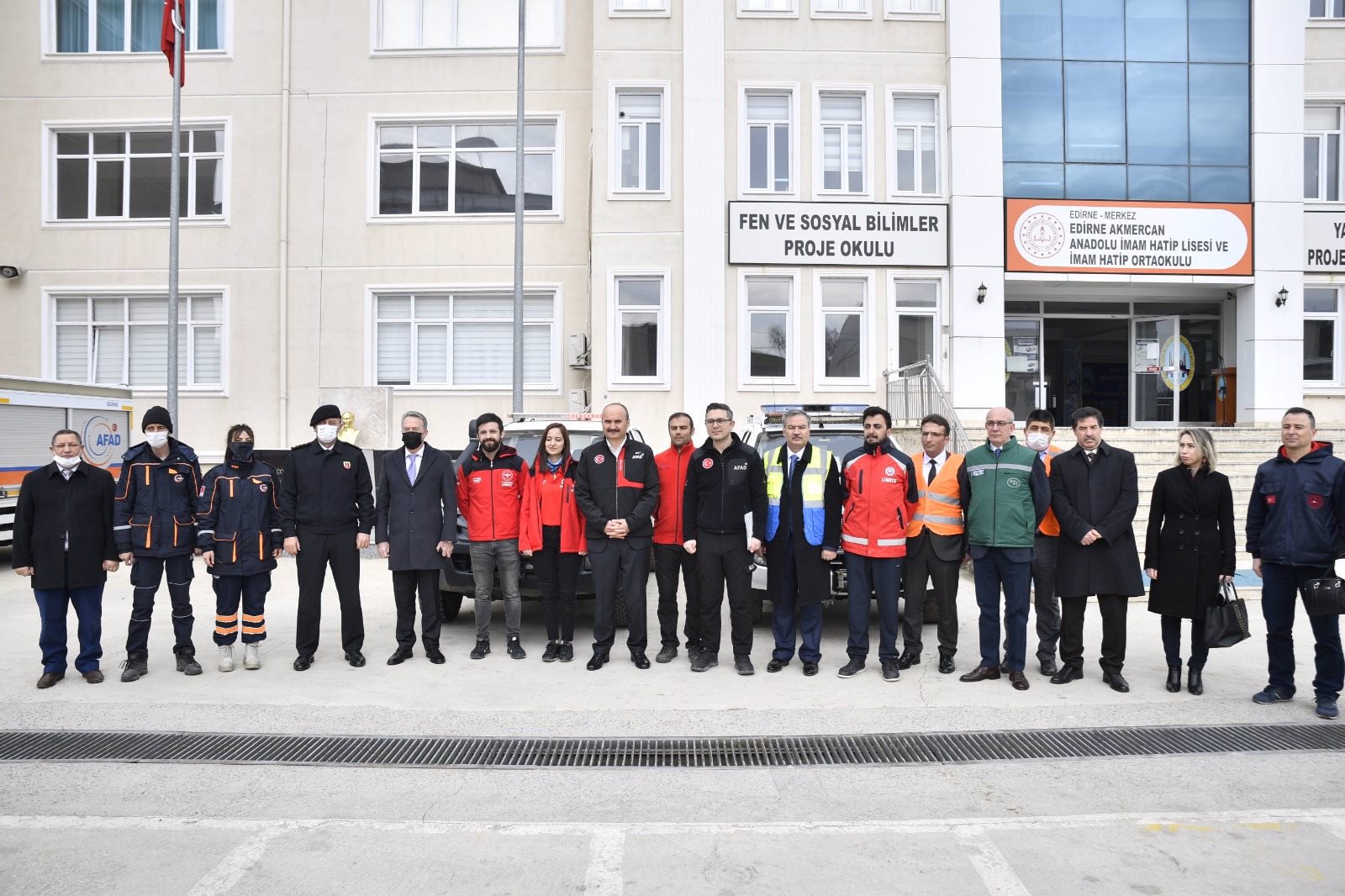 Bölge Müdürümüz Sn. Erdinç KURAN, İçişleri Bakanlığı koordinasyonunda düzenlenen Deprem Haftası kapsamında Akmercan Anadolu İmam Hatip Lisesinde Edirne Valimiz Sn. Ekrem CANALP’in katılımıyla gerçekleştirilen deprem tatbikatına katılım sağladılar.